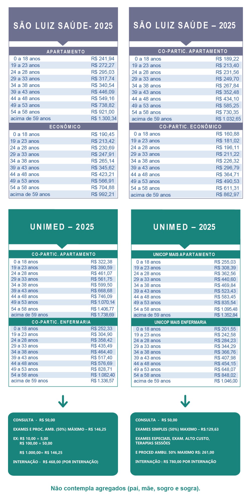 Podendo aderir ao convênio médico os sócios proprietários e dependentes, funcionários registrados na empresa e seus dependentes.