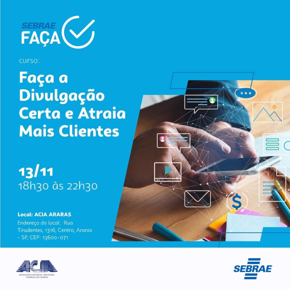 Presencial : ACIA - Associação Comercial, Industrial e Agrícola de Araras R. Tiradentes, 1316 - Centro, Araras - SP, 13600-071